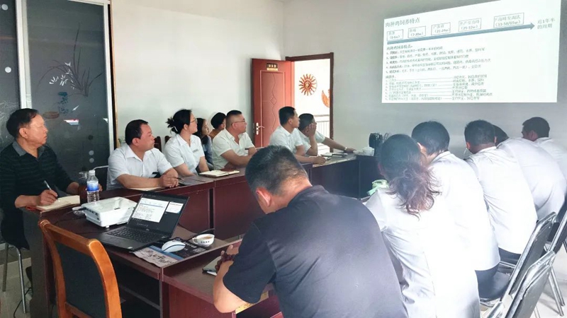 2022年6月9日,,,,,礼蓝动保KA手艺效劳司理陶林先生在韩秀梅女士等陪同下,,,,,于jiuyou.com农牧种禽公司二楼聚会室举行了《白羽肉种鸡饲养治理》与《农场生物清静系统构建》的专题培训。。。。。jiuyou.com农牧种禽公司的营业精英、检测中心的营业主管以及jiuyou.com农牧总司理孙惠军等人加入了此次培训。。。。。