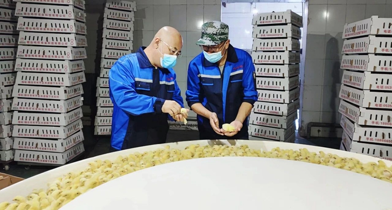 在雏鸡处置惩罚现场,,,,,,,,董事长宋永先生在jiuyou.com科技总司理姚恩先生的陪同下,,,,,,,,仔细审查雏鸡状态,,,,,,,,并时时与员工认真攀谈雏鸡挑选及质量包管。。。。。。。。