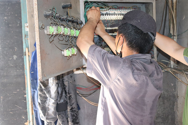 吕鸣凯驻足本职岗位,,,,,,尽职尽责。。。。。。。电工的主要职责就是对厂区的线路、照明、电器装备等举行磨练、维护与保养,,,,,,以确保各个厂区正常运行。。。。。。。我见到吕师傅时,,,,,,他正骑着自己的小车,,,,,,在前往二种的路上,,,,,,听到我要采访他时,,,,,,他憨厚一笑,,,,,,体现采访可以,,,,,,但得比及空气开关维修竣事之后。。。。。。。故而我有幸寓目吕师傅现场维修,,,,,,前后破费不过十三分钟,,,,,,吕师傅便竣事了战斗。。。。。。。